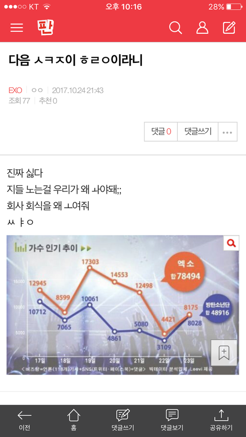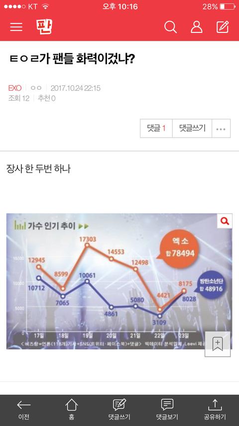 ㅌㅇㄹ가 팬들 화력이겄냐?
