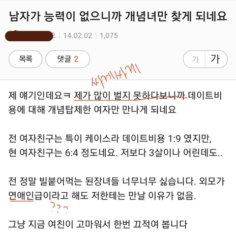 더치페이 루저페이 데이트통장 거지남 돈없는남자친구 거지남친