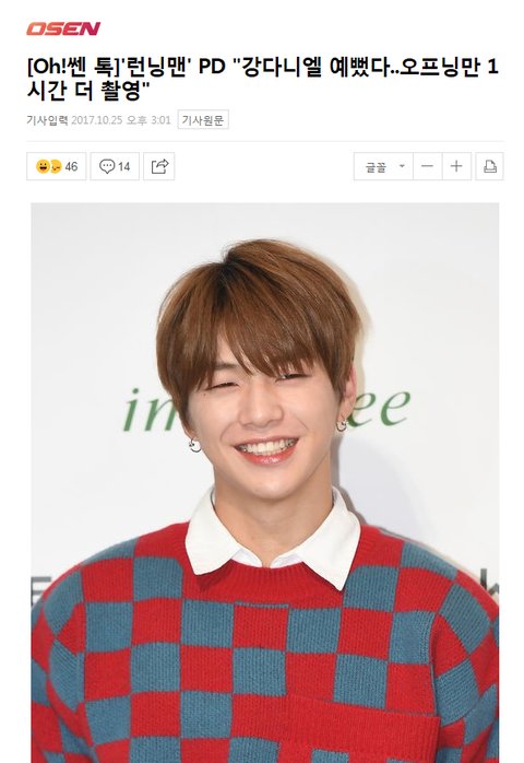댓글에 강다니엘 런닝맨 꼭 들어가는게 좋대!