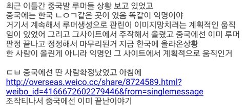 이번일 이미 중국에서 루머로 종결된사건이고 젭알 피뎊 따