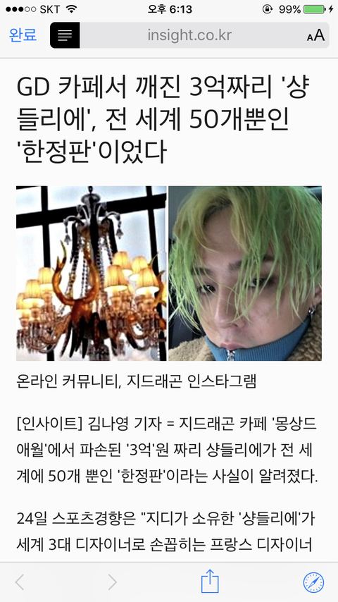 지디 샹들리에 전세계 50개뿐이래