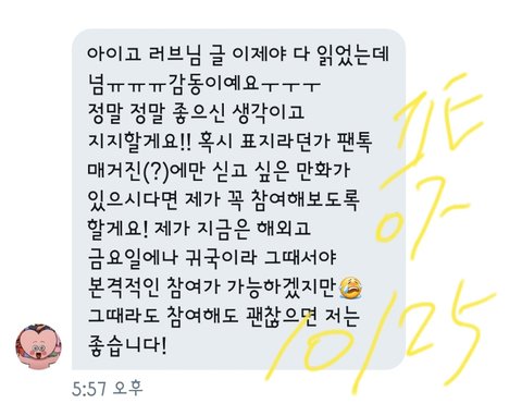 다만 만화럽 부담되지 않게 적정선에서만 부탁하려고하고 팬톡의 다른 금손럽들에게도 함께해주길 부탁할께