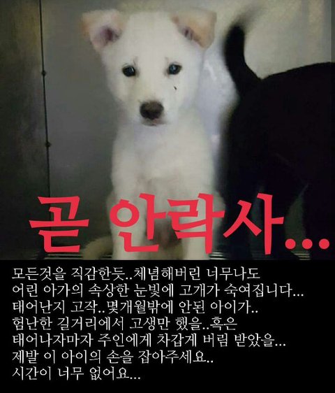 공유하다보면 , 이 아기강아지들에게도 살아갈 수 있는 기회가 생길 것 같아서 올려봅니다.