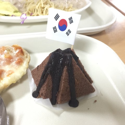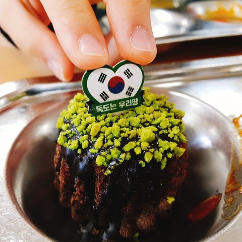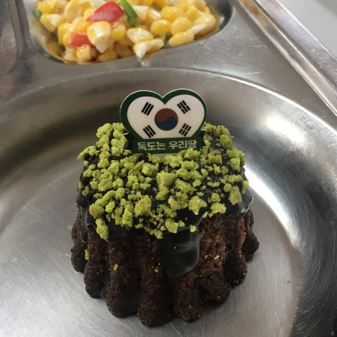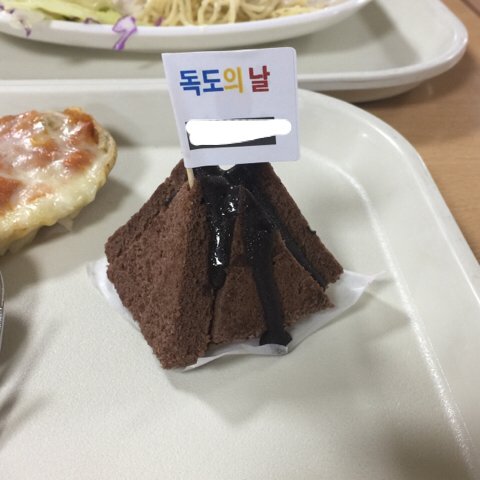 오늘 식단중에 볼케이노케이크라고 나와있길래 애들끼리 볼케이노케이크는 도대체 뭔케이크냐고 하면서 생각없이 줄서는데ㅋㅋㅋㅋㅋㅋㅋㅋㅋㅋㅋㅋㅋㅋㅋㅋㅋㄹㅇ로 그냥 화산모양인거야전시되있는거는 대충봐서 몰랐는데 받고나서 보니깐 독도의 날기념이더라 ㅠㅠㅠㅠㅠㅠㅠㅠㅠㅠ