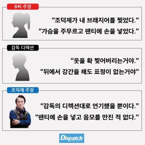 2015년 4월 16일 이천시 한 아파트. 영화 'OO은 OO' 촬영장. 조덕제의 역할은 폭력 남편 기승. 아내(B씨)를 상습 폭행하는 남자다. 13씬은 기승이 은정을 겁탈하는 장면.