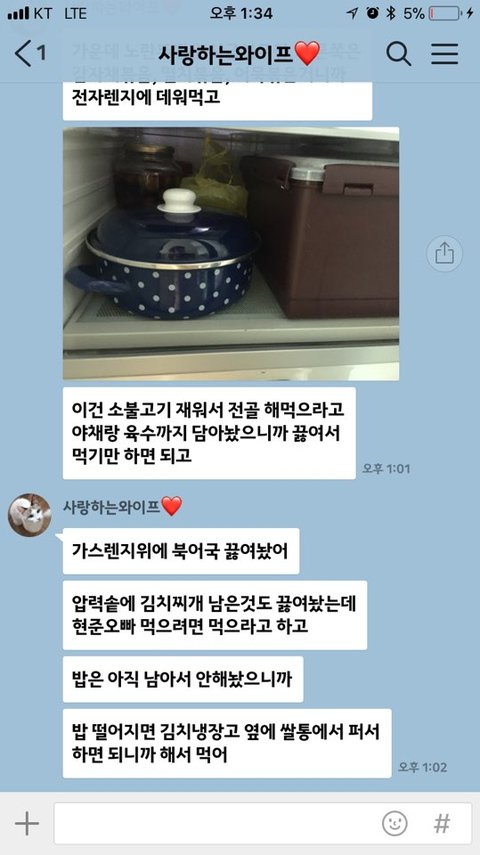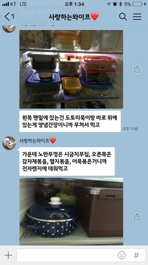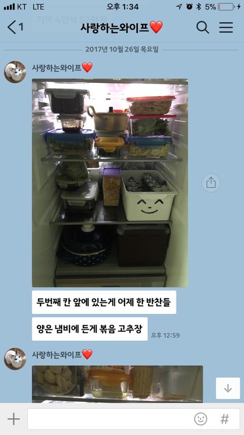결혼 5년째 인데 처음 아내가 집을 비워서 걱정이 됐는지 회사에 있느데 이런 톡이 왔네요~