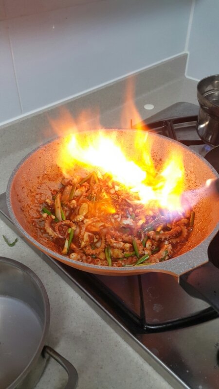 낙지볶음도 불맛 살짝 입히면
