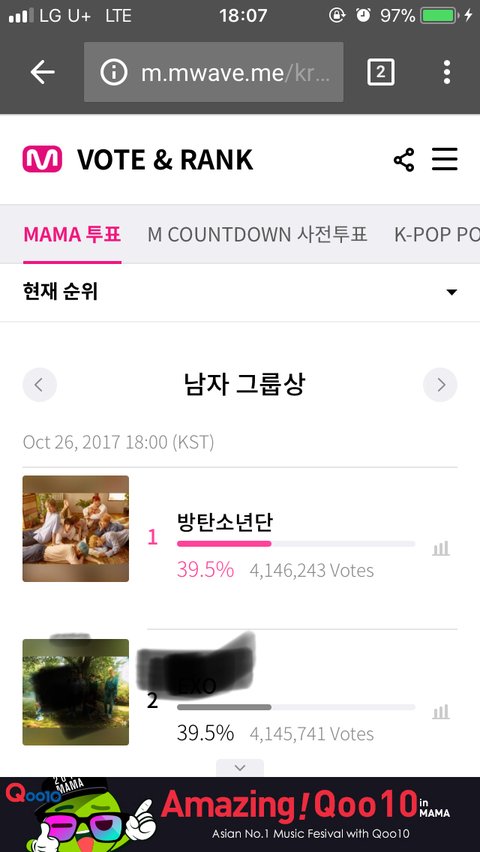 남자그룹상 +502 격차좁혀짐 ㅠㅠ