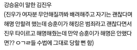 한사람 일이라고 하기엔 너무 조직적으로 움직이는거 같고 마치 진우 이미지를 안좋은쪽으로 만들려는 그런 느낌을 받았어..
