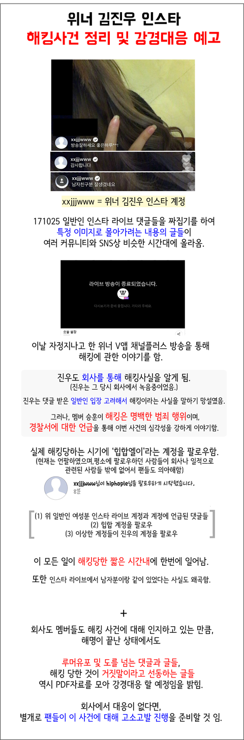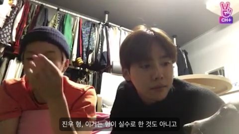 그 뒤로 자정이 살짝 넘어서 승훈이랑 진우가 브이앱 방송을 해줬고 진우 sns계정이 해킹이라고 해명을 해줬어