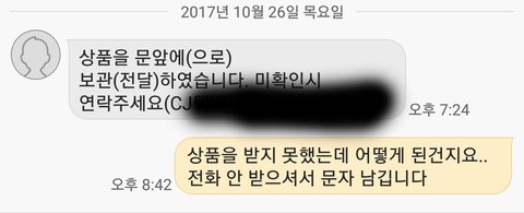 나 - 배송완료 문자 받자마자 확인했는데 없었어요