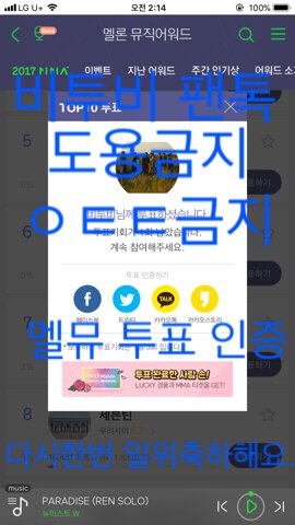 멜뮤랑 주간인기상에 저희 애들이 안올라와서 비투비분들 투표해주고 있어요.