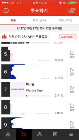 얘들아 정오에 aaa 본퉆 시작됐어 어제 10위로 겨우 본선 진출한듯 한데;;; 암튼 현재 7위 !!! 모두 분발해줘 ❤️ 오늘부터 본투표야