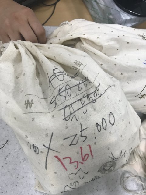 언론에 제보하기 위해 자루하나를 뜯어보니 보시다시피 이렇게 묶음도 다 뜯어놨더군요.