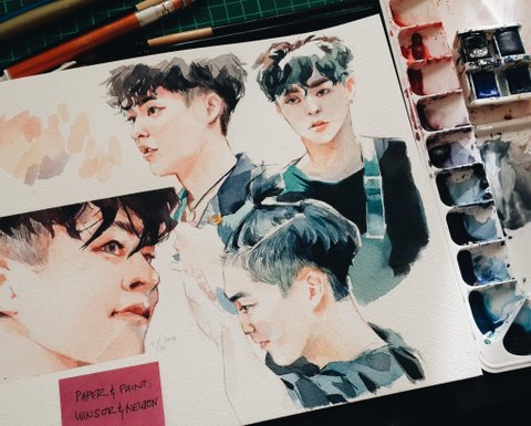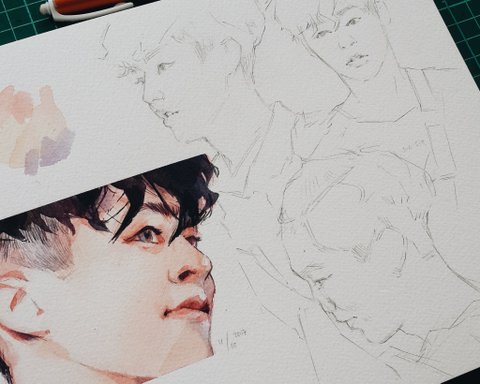 수채화로 사과머리 민석이 그리셨는데 대박 잘그리심