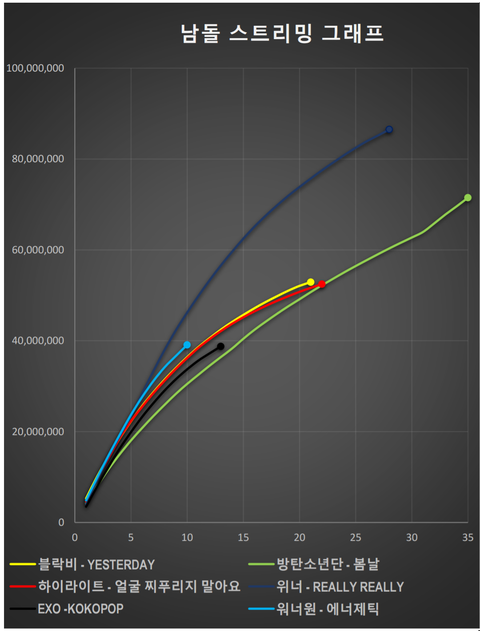 빅뱅 위너 방탄소년단 . 딱 세그룹이다. 노래로 꾸준히 오래가고 절대 하락하지않을그룹 셋 . 이건 노래 순위,성적으로 알 수 있음