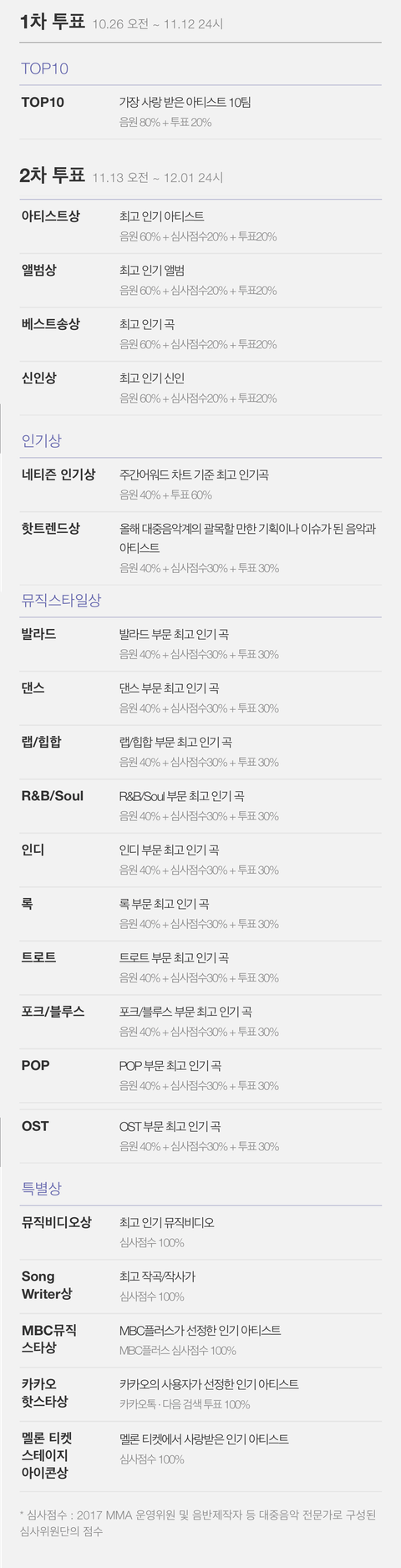 [디지털 음원 부분] 12 팀 : 2017년 발매 된 음원 같은 월에 발매 된 곡 중. 발매일로부터 30 일간 집계 한 데이터로 1 위 선정 방송 음원이나 영화, 드라마 OST, 오디션음원으로 제작 된 것 제외