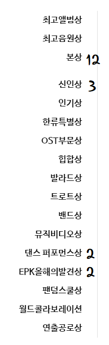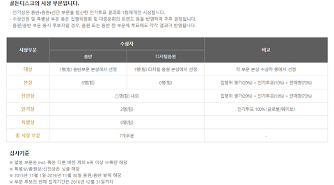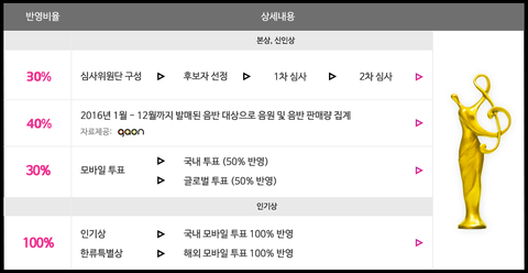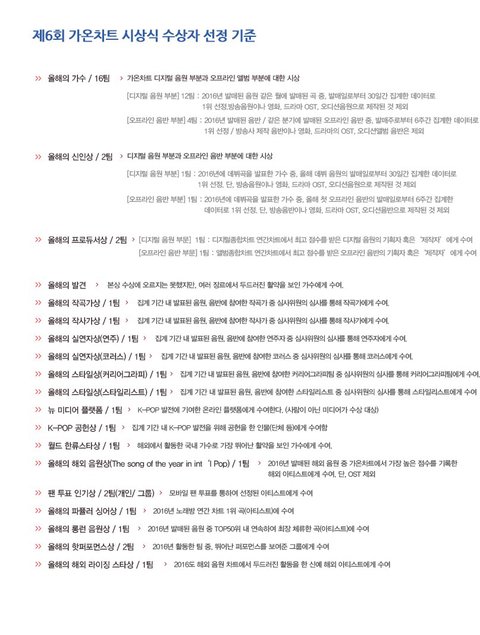 »올해의 가수 / 16팀 - 가온 차트 디지털 음원 부분과 오프라인 앨범 부분에 대한 사상