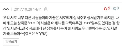 머리채풀고 승질내던 ㅇㅇ이 어제의 너럽을 위로해 주던 ㅇㅇ일 수 있다는거.