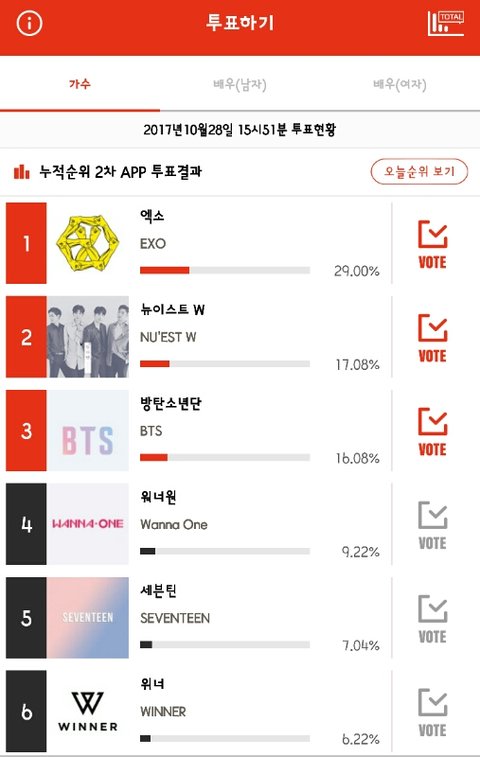 전차트 진입1위실패에 줄세우기실패..... 팬들 화력도어지간히 구린듯하더니 슈가케이크투표부터 뉴이스트한테 발리더니 시상식투표까지 발리네.....