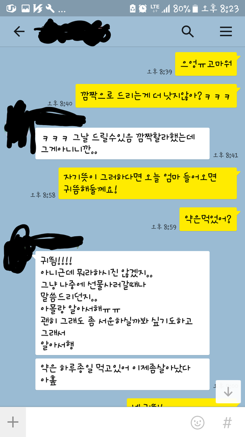 카톡내용은 최근두번의 트러블을 올려봅니다. 싸움의 시작부분입니다.