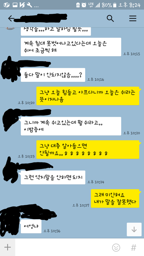 일단 .. 카톡내용사진은 싸움전체를 올리기엔 페이지가 너무 많을듯 하여 싸움의원인,시작부분 만 올려드린거예요 혹시나 오해는 없으셨으면 좋겠고,