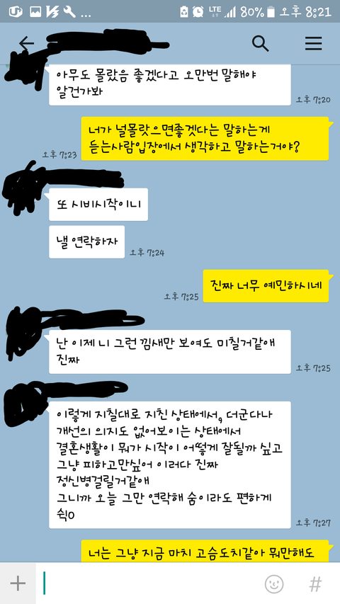 저희가 요새 너무 싸우고 둘다 지쳐서 너무힘드네요