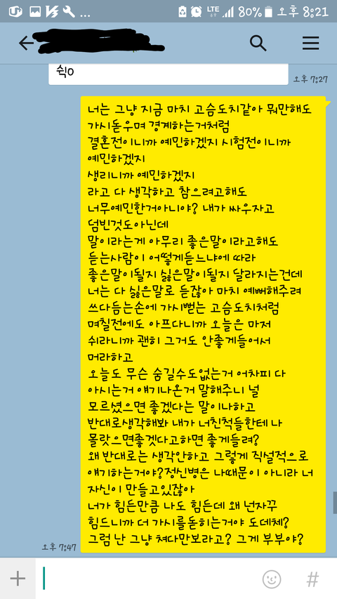 제가 판글을 보니 대부분 파혼,이혼 추천하시는데 아직까지 파혼생각은 없습니다..서로 잘맞아갈수 있도록 조언이나 방법 좀 알려주시면 감사드리겠습니다. 시간내주시어 읽어주셔서 감사드립니다.