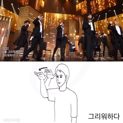 그리워 라는 수화와 일 년 이라는 수화와 가버리다라는 수화를 합친 것 말로 설명 못 함 ㅈㅅㅈㅅ