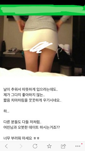 저거 블로그 밑에 내려보면 "사실 여친같은 거 없다" 뭐 이런 내용임 그러니까 여친 몰카찍은게 아니라 그냥 돌아다니는 야사를 저 블로거가 여친있는척 장난친거임