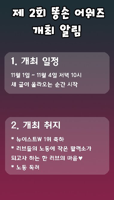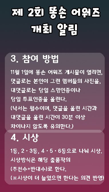 그럼 이제 본격적으로 똥손 어워즈 요강을 올려보도록 할게!