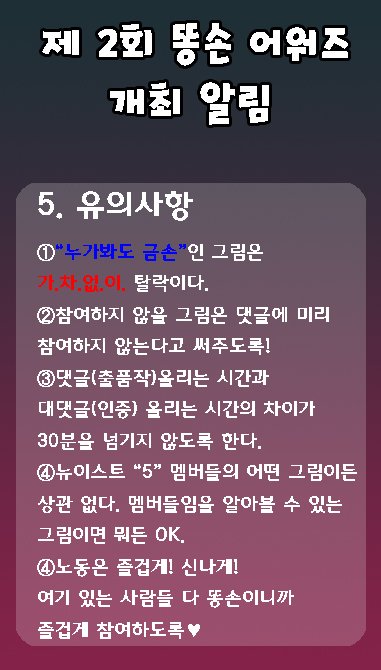 이 글에서 똥손어워즈 작품을 출품하신다면, 인정되지 않음을 유의해주시기 바랍니다.