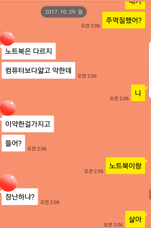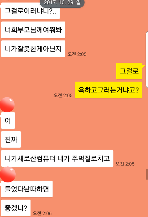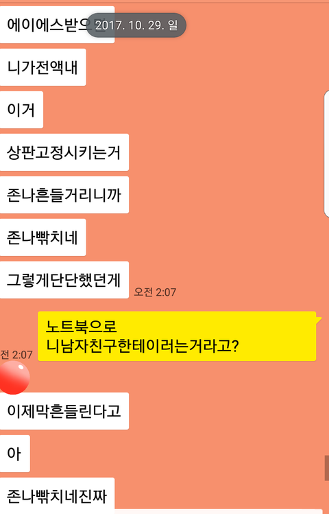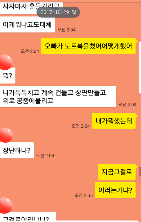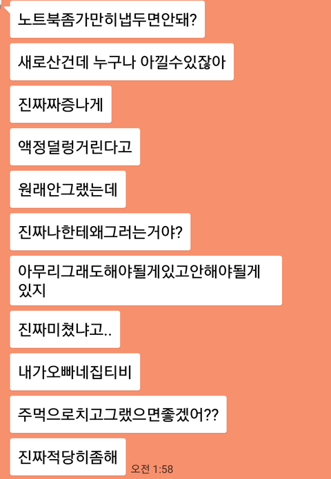 근데 집에 도착하니 톡이와있었고 내용은 노트북을 왜 건드냐며.. 욕을하더라구요.