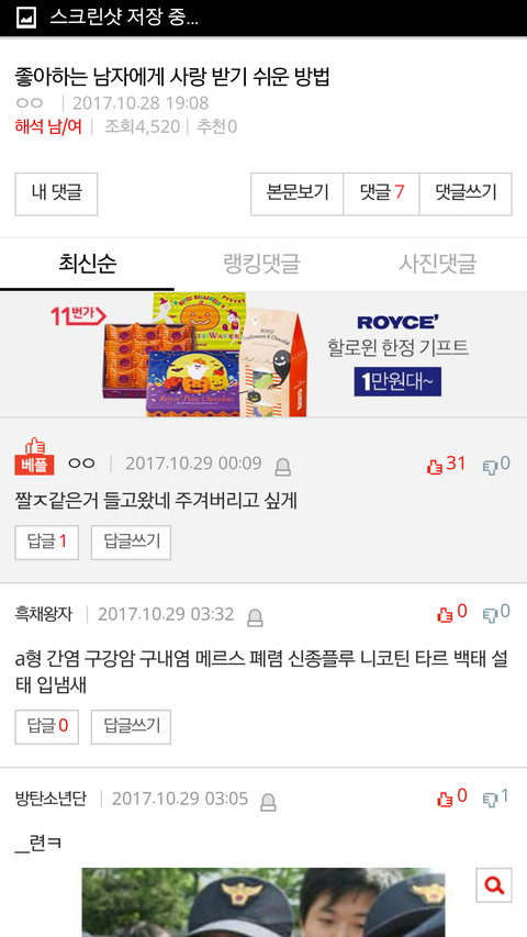 애초에 공포영화를 보러 가지를 말던가 영화도 지대로 못 보게 무슨 염병임? 중요한 장면 다 놓치겠네 에라이