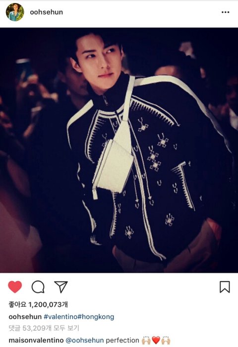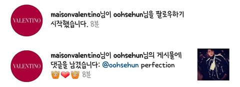 발렌티노계정에서 훈스타에 댓글