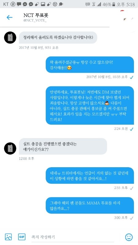 어제 NCT 투표봇에 뎸 보냈던 애야. 지금 상황은 이런 식임.