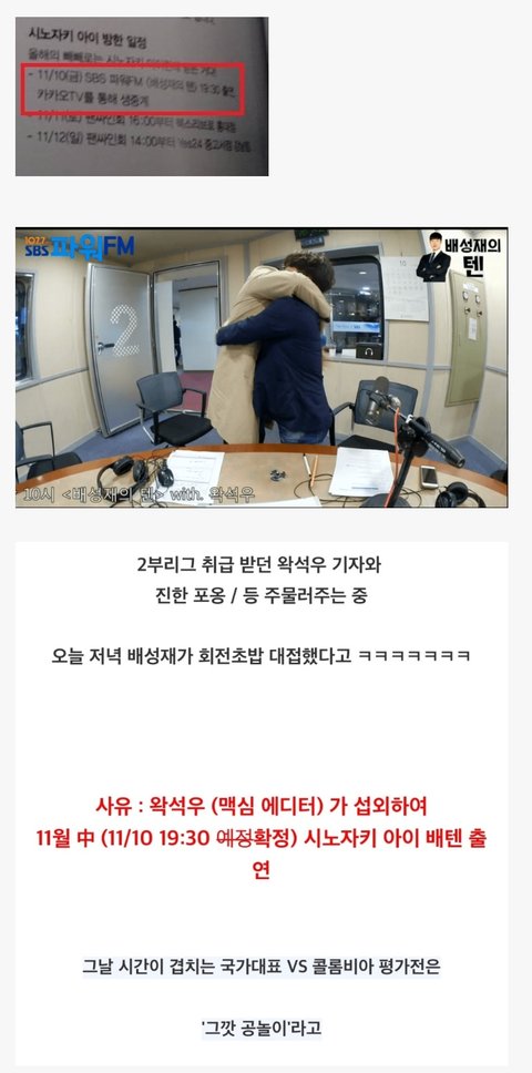 시노자키 아이 라디오 출연소식에 배성재 반응.jpg