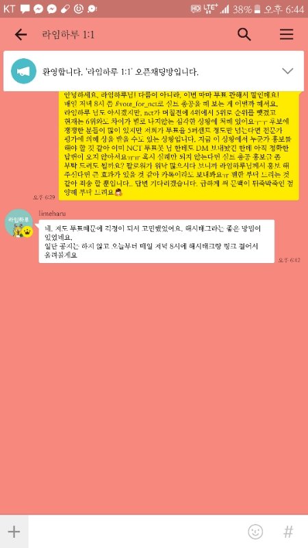 라임ㅎㅏ루님한테 카톡 답장 왔어!!