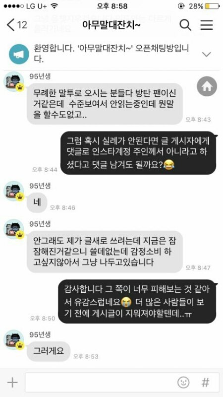 나두 저분에게 피뎁딴거 자료보내려고 엔터방 팬톡방 망치는것들 다 고소당해야함