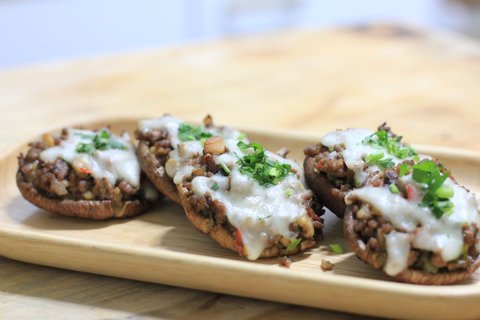 표고버섯 위에 올려 준다음 오븐에 구워 봤어요