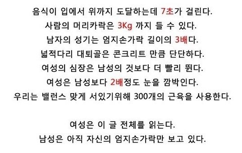 인체 관련 된 움짤 이랑 같이 올릴려고 찾다가 못찾아서 늦었어..ㅠㅠㅠ 미안해 인체의 신비나 그냥 인체에 관련 된 이야기 써주면 돼 !! 먼저 나는 사람 뇌를 100% 다 연구 할 수 없다는거 ..??