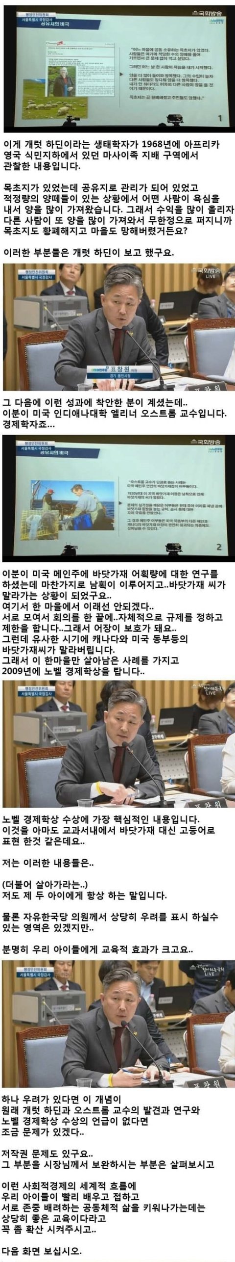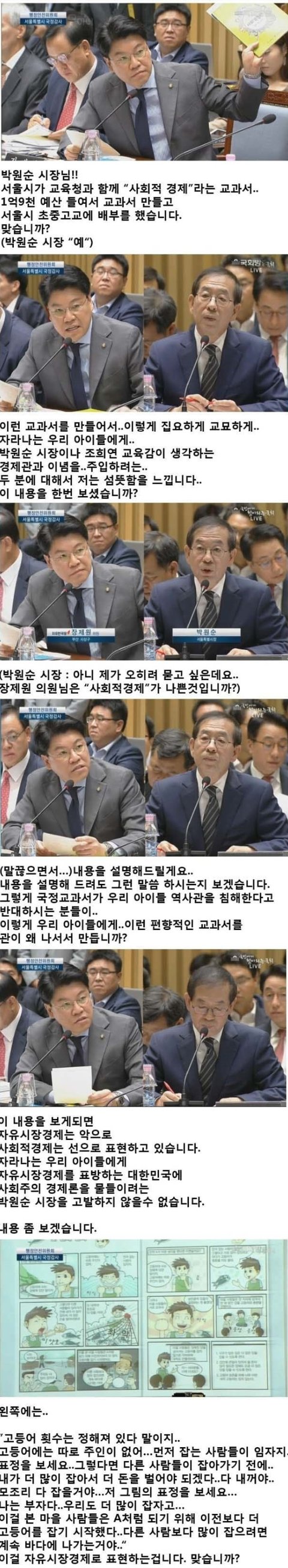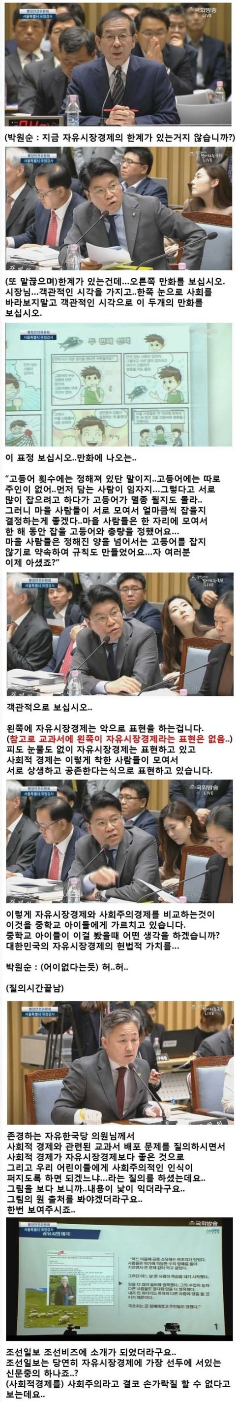 '사회주의, 사회적 경제 = 공산당, 종북좌파, 빨갱이'가 아님 우리가 그렇게 좋아하는 북유럽 복지국가들도 사회주의 국가고 북한, 소련식 사회주의가 오히려 사회주의에서 파생변형된 정치형태임 국회의원씩이나 되어서 정치이념에 대해 이 정도 상식도 없어서 괜찮은 건지 자질이 의문스럽다... 사회적 경제 언급했다고 종북이념 가르치는 교과서라니;