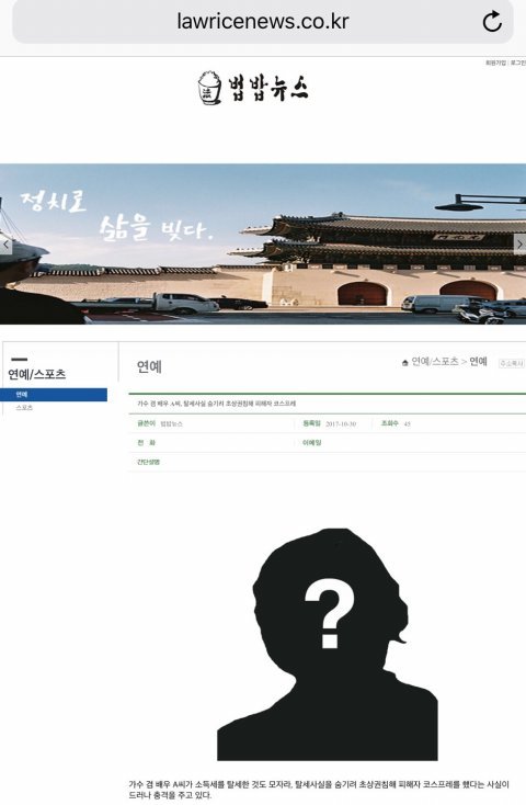 가수 겸 배우 A씨가 소득세를 탈세한 것도 모자라, 탈세사실을 숨기려 초상권침해 피해자 코스프레를 했다는 사실이 드러나 충격을 주고 있다.