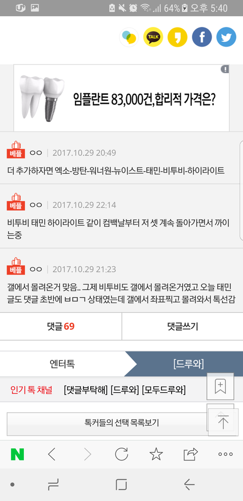 웃기지 않아?ㅋㅋㅋㅋㅋㅇㅎㅇ때는 그렇게 병먹금 잘해서 환멸난 인슾 한명이 엔터 가서 글썼는데 이번에 댓글 보면 나 인슾인데~~이러잖아ㅋㅋㅋ아무리봐도 갤련들 몰려온거라니까..?초반에 우현이 일까지 끌어와서 구체적인 사건을 들어서 욕하다가 지금 보면 헐 충격이다 이런 댓글만 있잖아 그런거 보면 갤련들이 초반에 와서 밑밥 깔고 댓 쓴다음에 튀니까 지금은 머글+타팬들만 남아서 욕하는거 같음ㅇㅇ그리고 댓에 갤 얘기만 나오면 반대 오지게 쳐먹이고 대댓으로 시녀다 어쩐다 이러잖아..ㅋㅋㅋㅋㅋ사진은 최근에 갤련들 좌표찍고 많이 온다고 얘기한 댓글