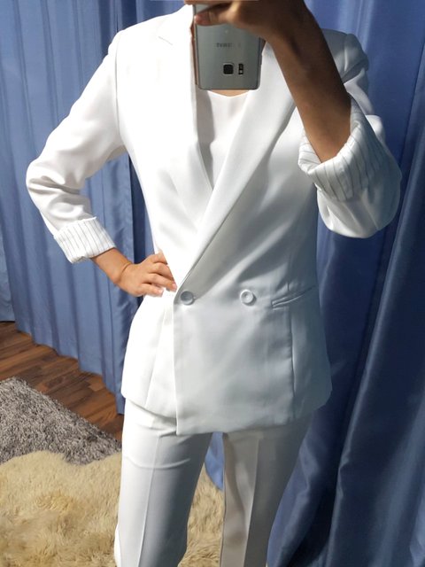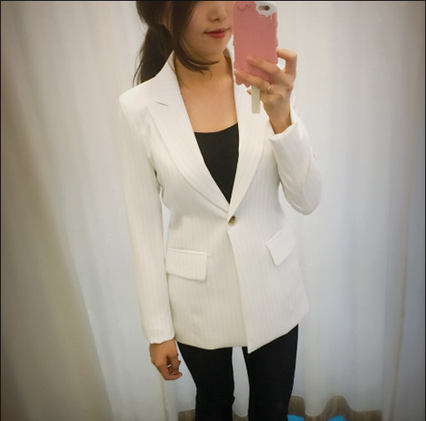 더블과 원버튼의 차이는 더블은 옆에서 봤을때 얇아 보여요. 대신 정면은 약간 퍼져보이구요. 원버튼은 정면은 얇아 보이지만 측면은 두꺼워 보여요. 사진을 정면에서 많이 찍는다면 원버튼 추천요. 그리고 원버튼 안에 오버스런 블라우스(브이넥 심하게 파이고 레이스 오버스런 것들)입고 오픈해도 사진 귀엽게 나와요. 대신 더블은 오픈해서 입기 좀 그렇고. 다양하게 활용하실거믄 원버튼이 좋을 것 같아요.