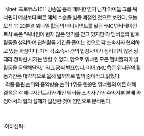 워너원 해체 실화 아니지?