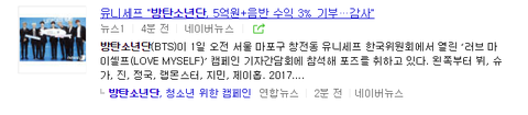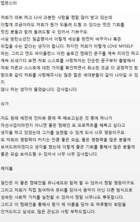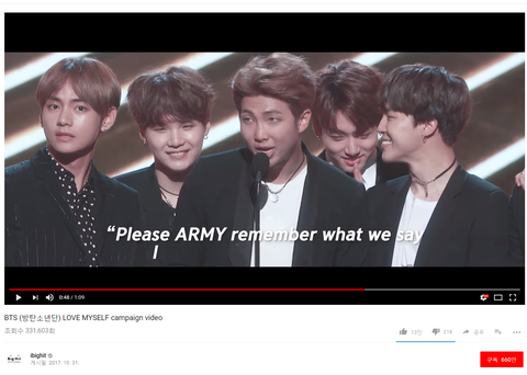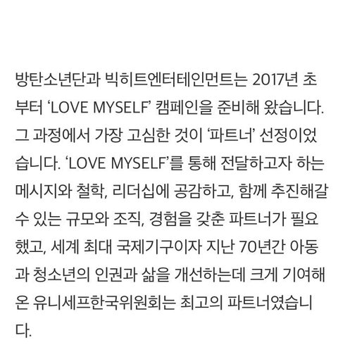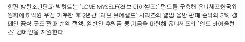사회에 긍정적인 영향을 끼치는 아이돌이라니 진짜 이상적이다.Love Yourself 가 단순히 앨범 컨셉에서 끝내는게 아니라 이렇게 좋은 캠페인으로까지 연결되다니 이정도면 진짜 빅힛의 기획력과 방탄음악의 메시지가 놀라움을 넘어 경이로움