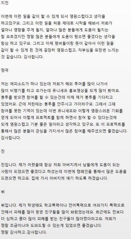 + 방탄소년단 맴버 인터뷰