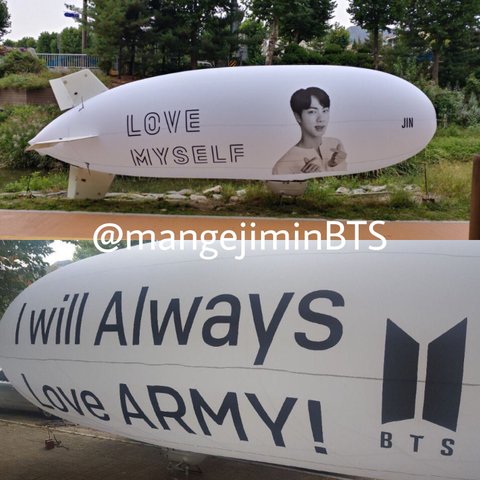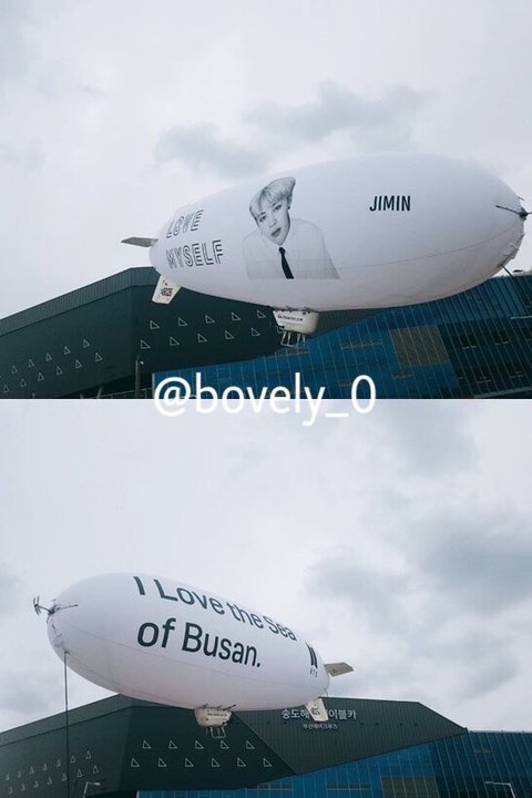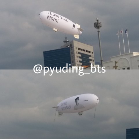 Love yourself 활동이 끝나고 얼마 전 부터 멤버 각자의 고향에 비행선이 떴었어!