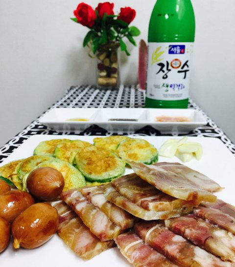 흐리거나 비오는 날엔 편육/비엔나/호박전으로 간단히 막걸리를 !!